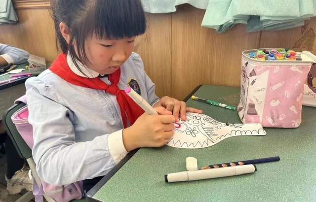 三年级《川剧之魂》,使用的材料是纸马勺、马克笔。看,三年级孩同学们也在仔细地创作中!