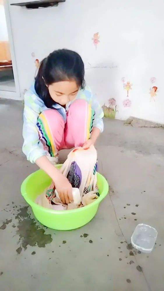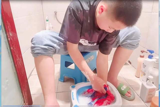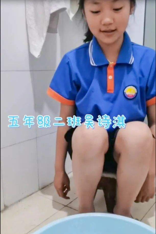 “起早红盆盛碧川,宽袍窄袖不相怜。莫嫌轻薄浑身汗,清爽斑斓满架鲜。”诗人笔下富含诗意的洗衣服,在五年级孩子们手里,变成了一个实实在在的日常生活技能。孩子们提前在家录制洗衣服的视频,然后以视频参赛,评委们通过观看视频评选出“洗衣小达人”。