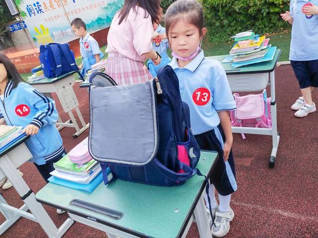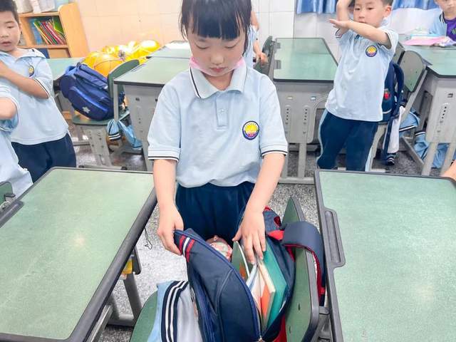 在小小整理师们的巧手操作下,原本杂乱的一堆堆东西都乖乖地回到了书包里。