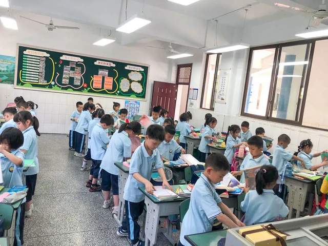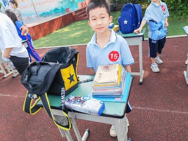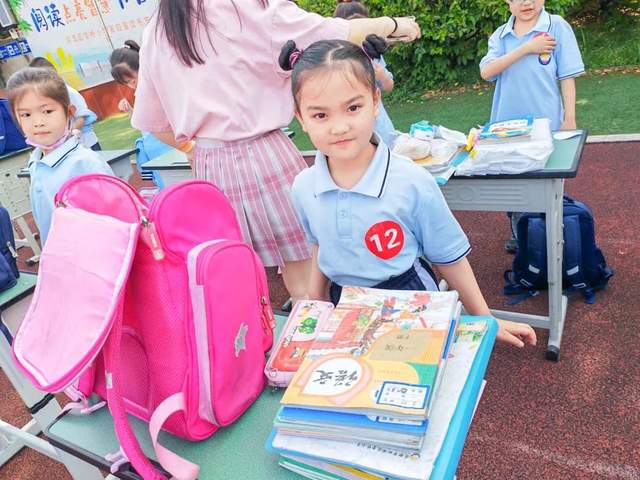 “哗啦”,从一个个书包里倒出来一堆堆书本呀、文具呀,面对这一堆堆杂乱无章的书本、文具,一年级的小选手们毫不慌乱,只见他们有序地先将书本、文具分好类,再快速地将它们一一放进书包里。