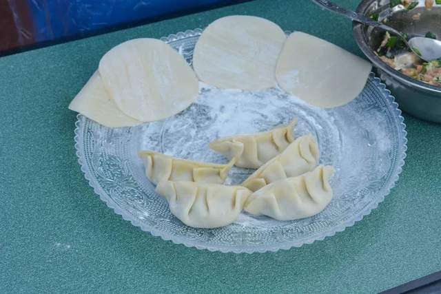 不大一会儿功夫,一个个饱满美观的饺子便整整齐齐地摆满了盘子。