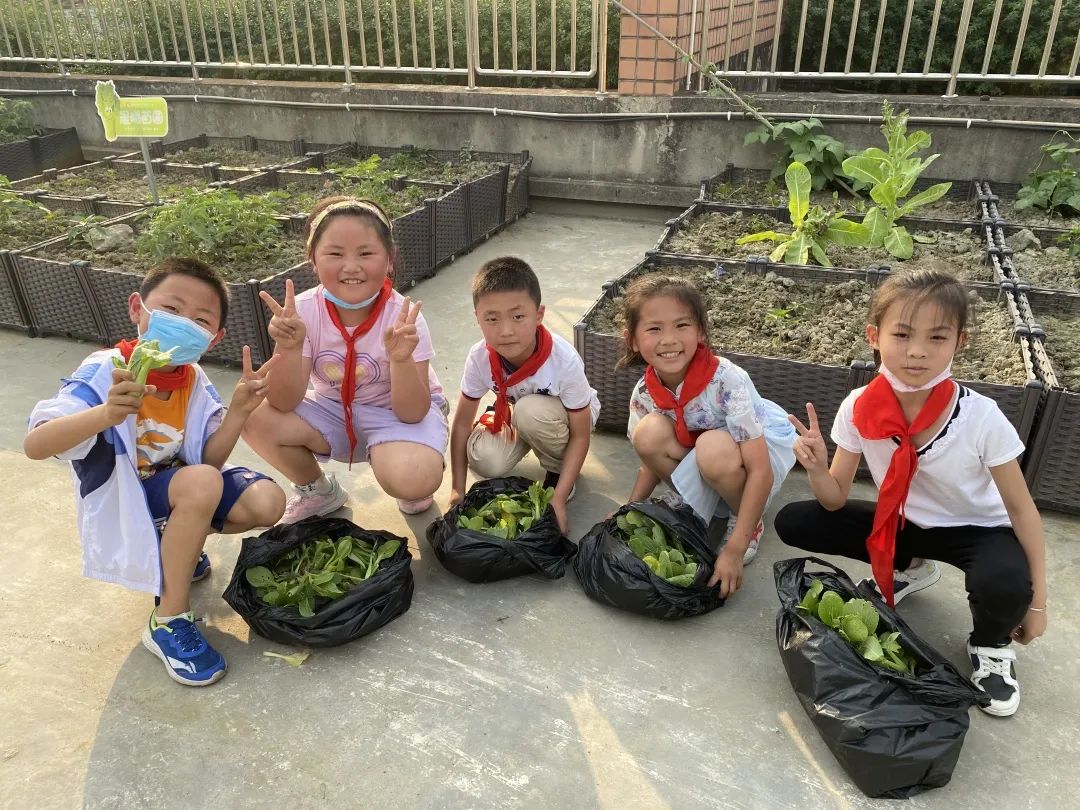 盼望着、期盼着 ,小菜苗慢慢长大,同学们迎来了丰收季!孩子们收获了辛勤劳作的成果,也收获了丰收的喜悦,明白了生活的真正幸福来源于劳动。