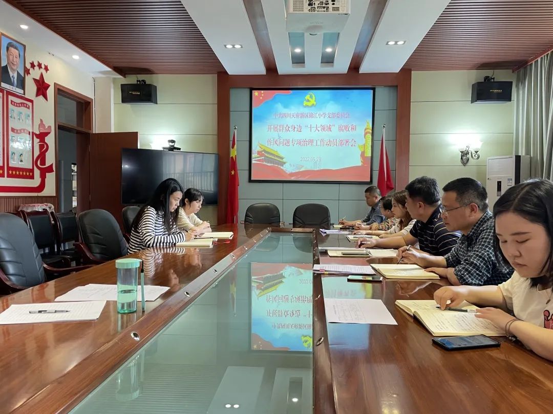 5月23日上午,在党团会议室,召开了部署会,会上成立了领导小组,明确了分工,讨论了锦江小学《关于开展群众身边“十大领域”腐败和作风问题专项治理的工作方案》。