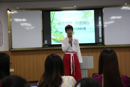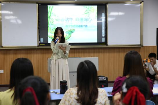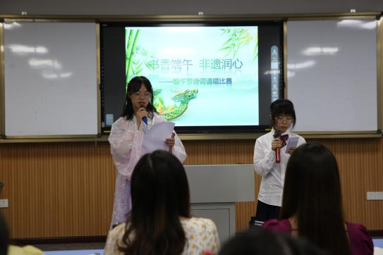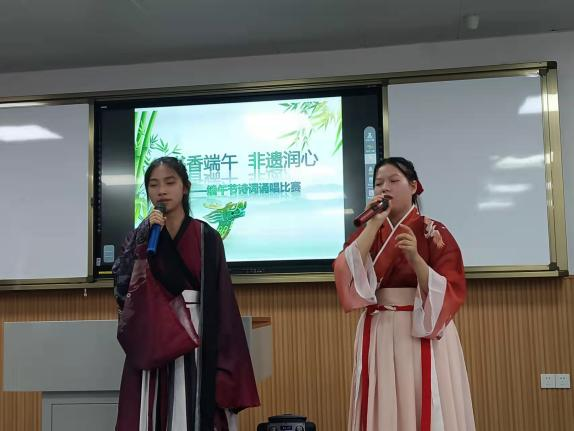 为活跃校园文化,营造浓厚的书香校园氛围,在端午佳节来临之际,校团委组织同学们在学校录播室举办了“书香端午,非遗润心”——端午节诗词诵唱比赛。