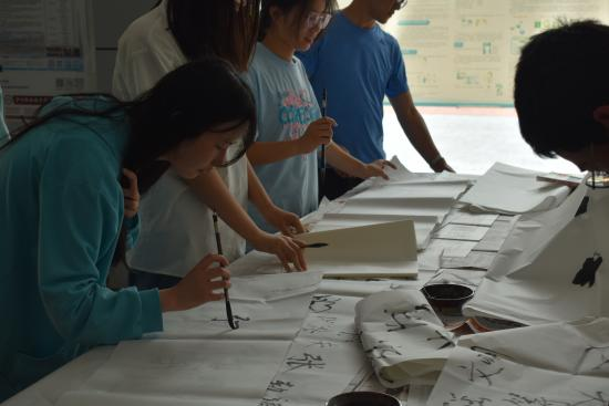 一笔一画一世界,一张一弛一智慧。活动开始前,50余名同学围在老师们身边,聆听他们绘声绘色的讲授软笔字的演变过程,观摩提笔在纸上龙飞凤舞,恣意泼洒,粗细藏露皆变数无穷,气象万千;活动开始后,同学们挥毫泼墨、神情专注、用心书写一笔一画、一撇一捺,笔势开阔,起转锋回,字字溢香。