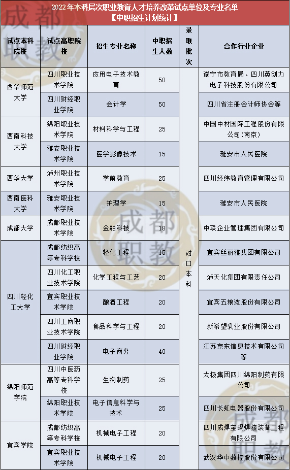 随着职业教育进入高质量发展阶段,四川省也稳步推进本科层次职业教育人才培养试点工作,自2020年起,四川省开展本科层次职业教育人才培养改革试点。这种培养模式最大的特色是本科高校、高职院校、行业企业等多方协同共育人才。