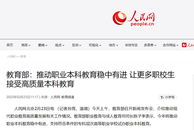 新修订的职业教育法,为普通高等学校设置职业本科教育专业,专科层次职业学校设置职业本科教育专业预留空间,职业学校的学生不仅可以读大专,还可以上本科,职业教育吸引力、影响力不断提高。