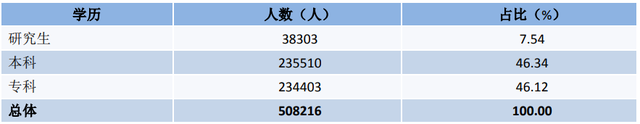 每年四川高考考生大约有一半是被专科批次录取,根据《四川省2021届高校毕业生生源信息与就业意向调查报告 》显示,四川省2021届高校毕业生共508216人,其中,研究生38303人,占比为7.54%;本科生235510人,占比为46.34%;专科生234403人,占比为46.12%。