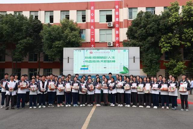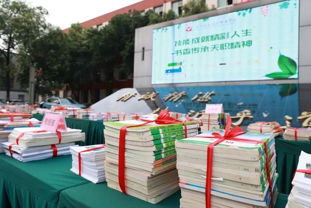 在天府职校2022届高三毕业生赠书仪式上,高二的学生收获了学长们妥善保存的“奋斗印记”。