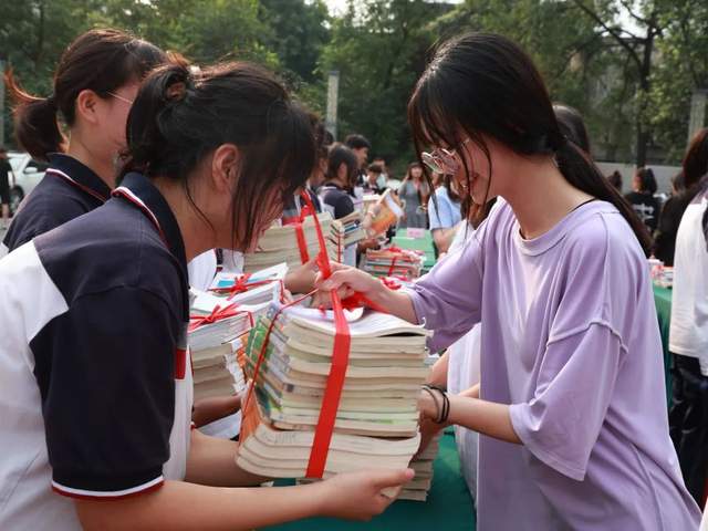 “学霸笔记”是同学们都会争相传阅的“宝藏”。6月8日下午,四川天府新区职业学校的高三同学在高考结束后回到学校,将自己积攒了几年的书籍、笔记赠送给了在校的学弟学妹们。