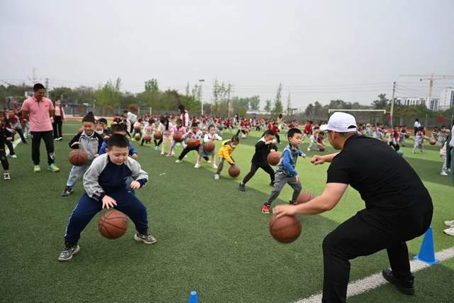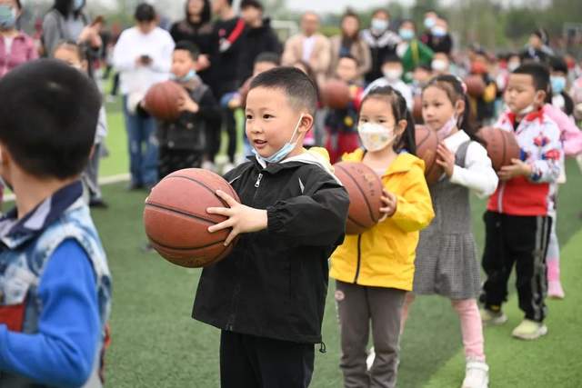 “哇~小学的操场好大、好漂亮呀!”小朋友不禁发出感叹。幼儿园的小朋友站在哥哥姐姐们旁边,跟着他们参加晨锻,一起拍打篮球开心极了!