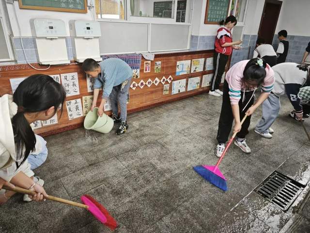 校园里,教室里,一个个小小的身影,一双双勤劳的小手,让校园的每一个角落干干净净,每一间教室窗明几净。
