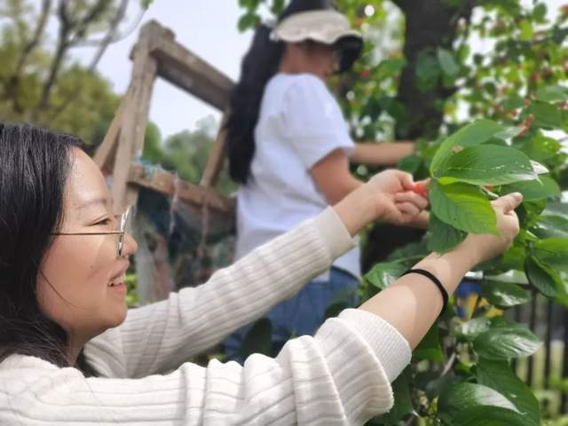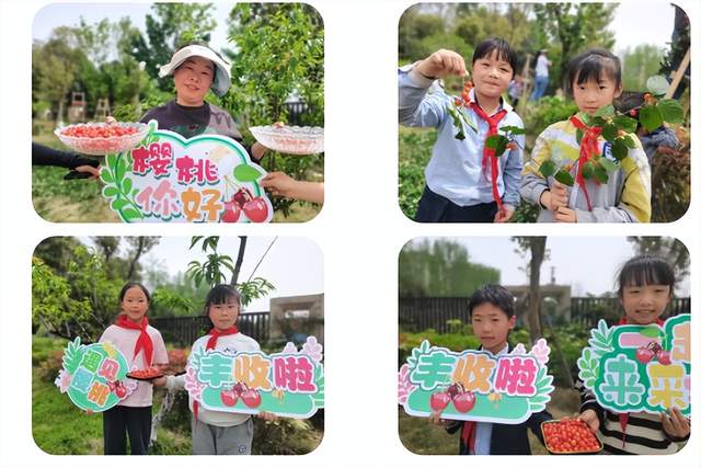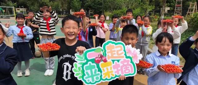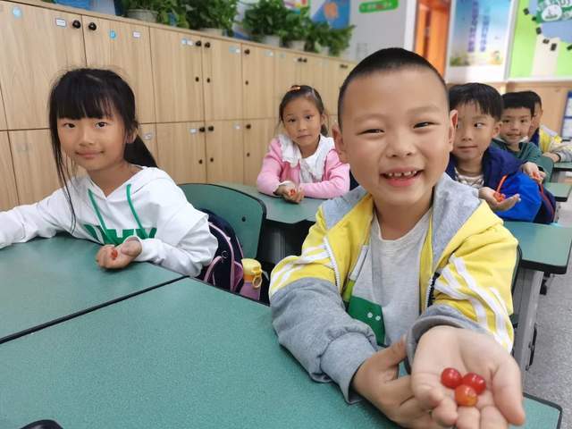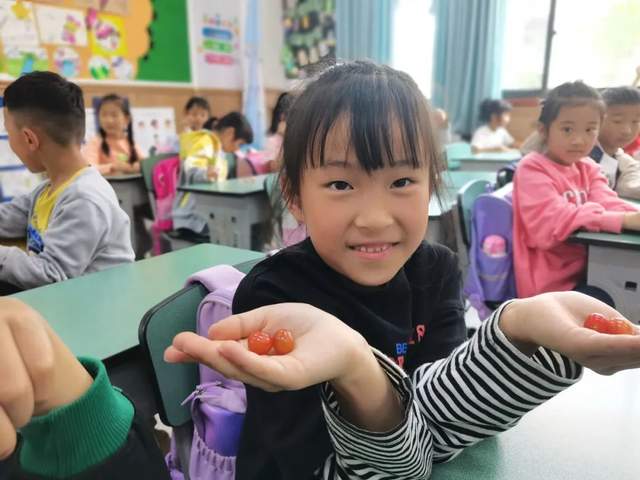 随后,同学们把采摘的樱桃分到了全校师生手里,大家一起享受丰收的喜悦。“哇!好甜!”,“嗯,有一点酸”,“哇!好酸!”“老师,你也尝尝!”同学们的表情丰富极了……丰收的喜悦从樱桃园蔓延到各个教室里了,品尝着来自自家劳动实践园的樱桃,同学们兴奋极了!脸上挂满了甜蜜的笑容。