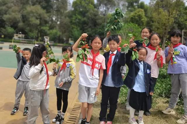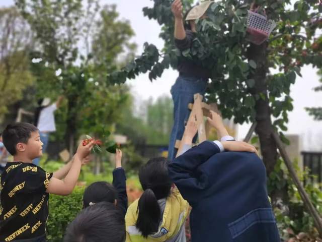 春天,把树梢的樱桃染成了讨人喜欢的红色,搬来梯子,找来篮子,双流区实验小学外国语学校的老师们爬上了树梢,孩子们围在了树下,快来!摘樱桃啦!