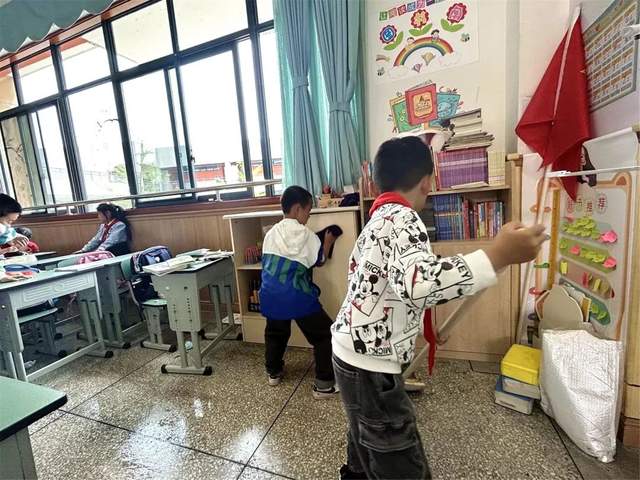 “一屋不扫何以扫天下”。小小的书桌,蕴藏着大大的道理!能能娃们在老师的组织下正在井然有序地打扫教室。学习简单生活技能,培养自理自立习惯,孩子们身体力行,诠释着劳动的意义。孩子们依旧是干得不亦乐乎,认真打扫的孩子们散发着劳动的光辉!