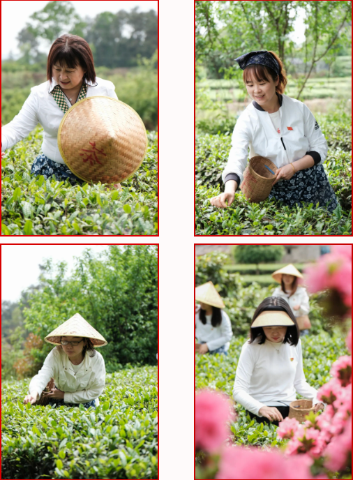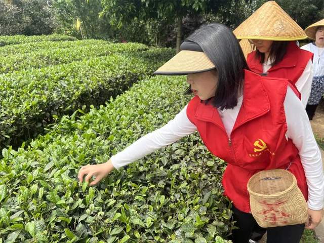 “劳动创造幸福,实干成就伟业”。当天下午,为了传承革命先烈的无私奉献精神,全体“红海棠志愿者”党员教师在党支部书记的带领下来到当地农户家里,帮助农户完成春茶采收工作。茶园里,党员老师们身穿红马甲,背上小竹篓,来回穿梭于茶丛间。蓝天白云下,一抹“志愿红”显得格外耀眼。随着一捏一提,一叶一芽或两叶一芽的嫩茶尖被采下装篓。经过一下午的奋战,一个个小竹篓收获满满,大家的脸上洋溢着春茶收获的喜悦。
