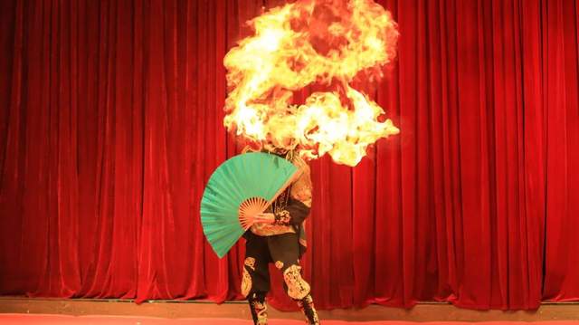 午间,4-6年级全体孩子齐聚大唐厅,观看变脸吐火表演。