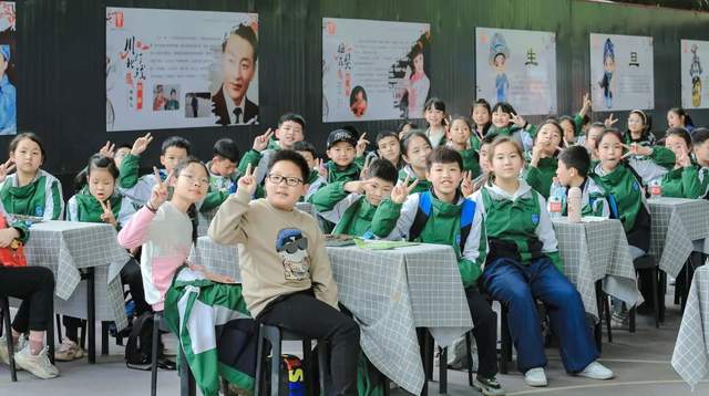午餐后,孩子们又来到川剧小院,在川剧传承人的指导下学习川剧艺术。并换上川剧服饰,感受传统文化的博大精深。