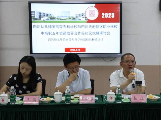 4月18日,四川幼儿师范高等专科学校五年贯通人才培养合作签约仪式暨研讨会在四川天府新区职业学校举行。