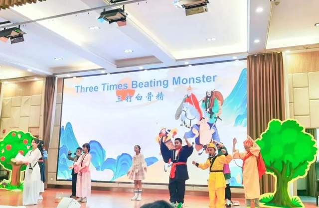 三年级的孩子们在一个个经典的英语故事剧表演中,自信展示自我,体会剧中主人翁们身上自信、勇敢、诚实等美好的品格,感受英语学科带来的快乐。