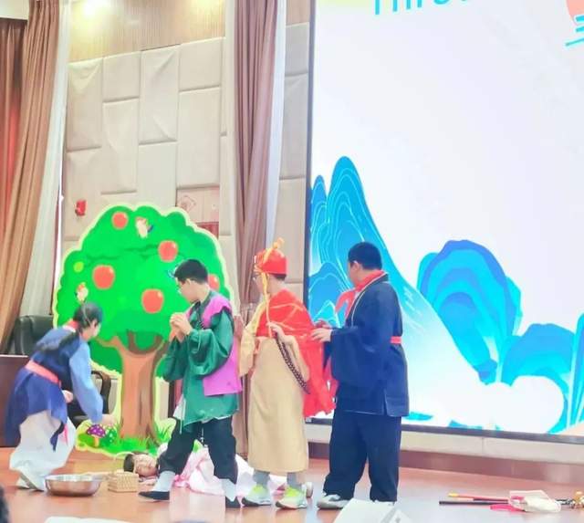 六年级的小演员们充分发挥了他们传奇般的表演风格。华丽的服装、充满感情的演绎,精湛的演技,标准的发音,赢得了大家的掌声和喝彩,将整场表演推向高潮。