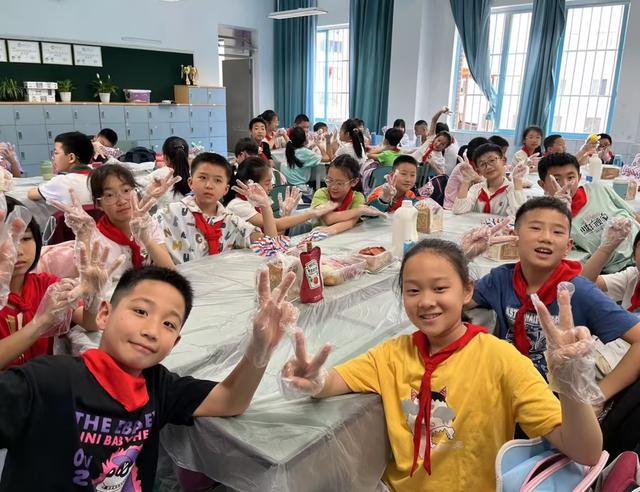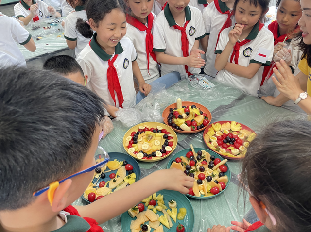 美味饭团、冰糖葫芦、精美的糕点、香喷喷的饺子……家长们“八仙过海,各显神通”,把厨房搬到教室里,教孩子们制作各种令人垂涎欲滴的美食。孩子们把美食摆放在桌上,香味已经弥漫整个教室,孩子们情不自禁发出惊叹:哇,好香啊!美味十足、色香味俱全的美食,让人垂涎三尺。孩子们排着队,拿着餐盘,或带着一次性手套,快乐地穿梭在美食间,他们脸上洋溢着满足和快乐,分享是快乐的。