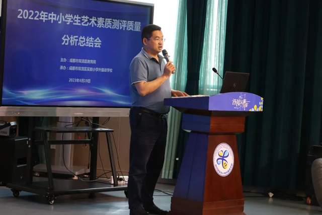 德育艺体科科长万明在会上作双流区2022年中小学生艺术素质测评工作汇报。万明指出,2022年双流区积极响应成都市中小学生艺术素质测评工作安排,顺利完成区域内义务段学生艺术素质测评工作,做到3-8年级学生全覆盖,测评相关工作取得阶段性成绩。并表示2023年是双流区“城市品质提升年”,需遵循区教育局“17422”工作思路,把“教育优质均衡提升年”作为2023年工作重点目标。