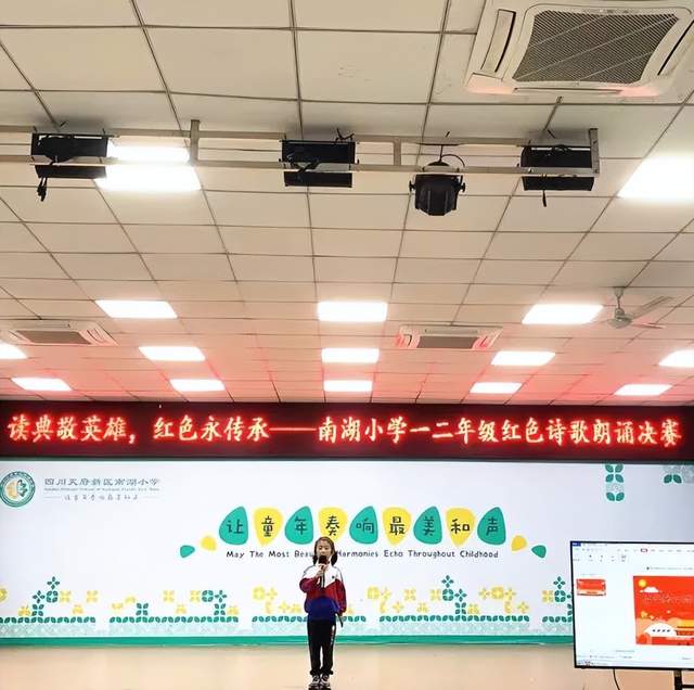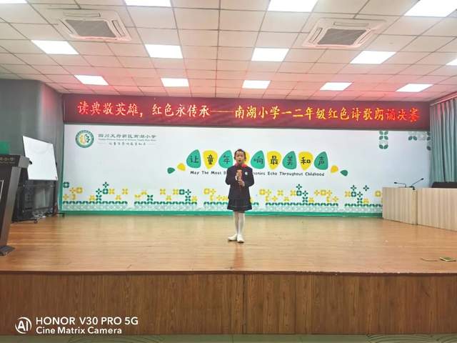 一、二年级举行了“读典敬英雄,红色永传承”红色诗歌朗诵比赛。经过各班角逐,最终20多名学生站上决赛舞台。