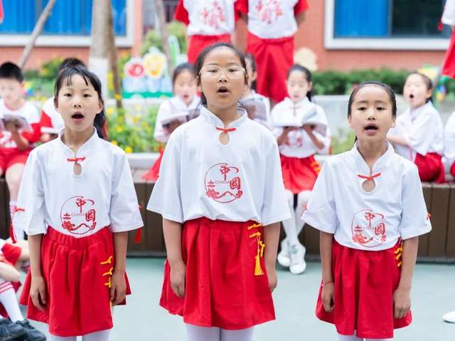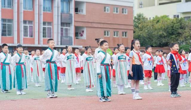 清风拂面而来,诵书声盈满校园。操场上,一至六年级的学生们大方展示了近期国学经典诵读的成果,让这万世风骨的华夏情怀和文化道义响彻校园。