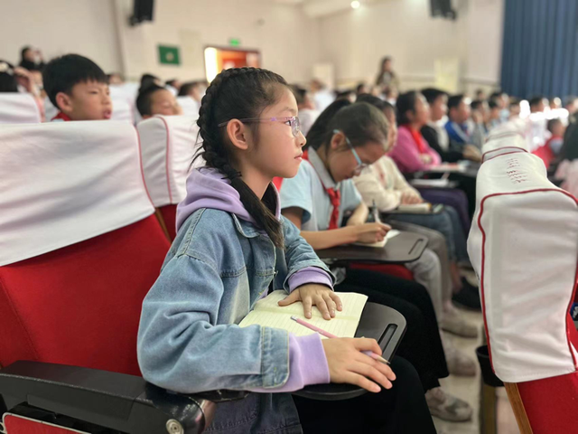 看!他们热烈地讨论着,思考着,追问着。当学习到橘色的黑匣子是为了醒目时,当了解通常的民航飞机有两个发动机且如果一个发动机出现故障也不影响飞机行驶时,当知道航班延误可能有自然或人为等多种因素影响时,当知道民航飞机倒退需要拖车辅助时, 现场的孩子或意外,或自喜,一切的疑问与猜想都得到了主讲老师的肯定与科学的解答。一场关于航天的梦想的播种正悄然在和美校园中进行。