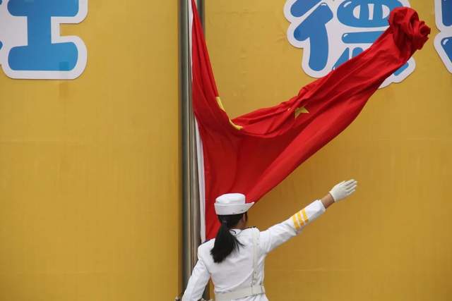 升国旗,奏国歌。全体师生高唱国歌,少先队员行队礼,五星红旗在雄壮的国歌声中冉冉升起。注视着鲜艳的五星红旗,我们的爱国主义情感和民族自豪感油然而生,祝福祖国更加繁荣昌盛。