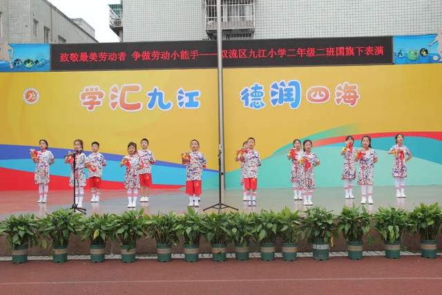 二年级二班以“致敬最美劳动者 争做劳动小能手 ”为主题进行表演。