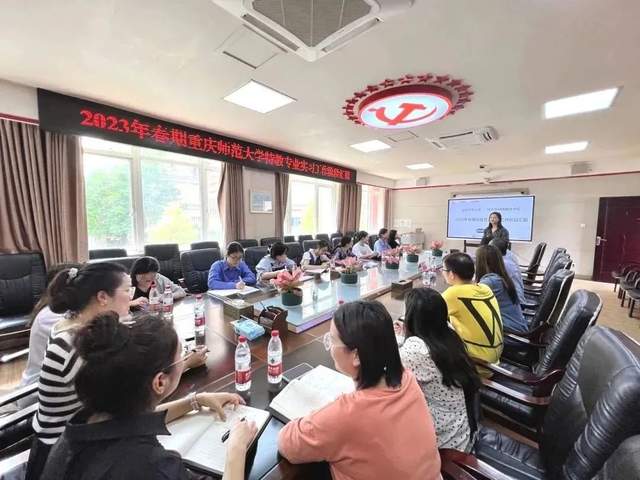 2023年4月中旬,重庆师范大学特教实习生阶段实习工作汇报在双流特校会议室召开,参加本次会议的有双流特校党支部书记、校长王双亭,重庆师范大学指导教师张炼,各年级实习指导老师及重庆师范大学实习老师。