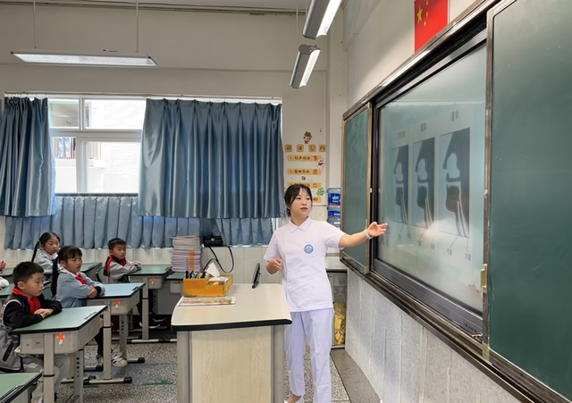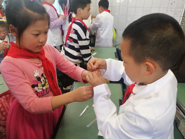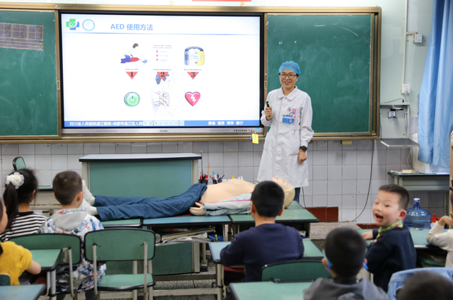 不同年级的家长,根据学生的年龄特征和认知特点,从儿童日常急救、口腔和手部卫生、医疗器械装备等多个方面详细地让孩子们了解医学常识,更好地保护自己、关爱同学。