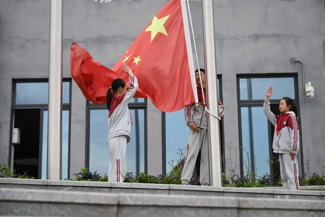 升旗仪式正式开始,伴随着雄壮的《义勇军进行曲》,鲜艳的五星红旗冉冉升起,迎风飘扬。学生们庄严肃立,面向国旗敬礼,表达对伟大祖国的热爱与敬意。