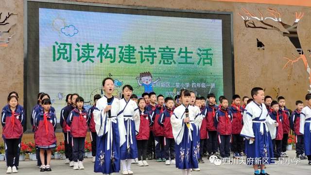 4月24日,天府新区三星小学4.1中队的孩子们带来了国旗下主题活动“阅读构建诗意生活”。