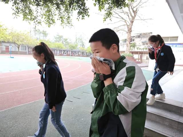 消防警报拉响后,演练正式开始了,孩子们在各班班主任的带领下有序撤离教室,各岗位人员也快速各就各位,协助疏散学生撤离到了操场安全避险。学生用湿毛巾捂住口鼻,低下身子,沿墙角边有秩序的撤离,教师引导学生逃生时不抢道、不惊慌。疏散结束后,安全处张林主任对此次演练活动进行了总结,并对消防疏散演练的正确方式进行了正确示范。