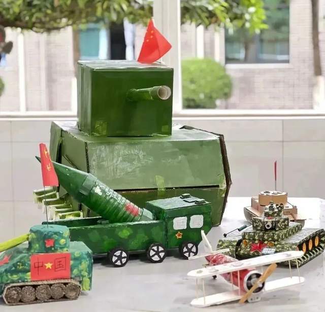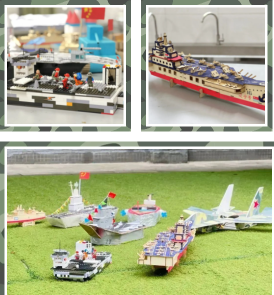 与科技制作交手,载着梦想启航。锦小娃们用卡纸、废旧材料等制作坦克、火箭、军舰模型。一个个惟妙惟肖的模型蕴藏着锦小娃们对国防军事科技装备的懵懂热爱,也是一群祖国少年对强国强军的热切回应!