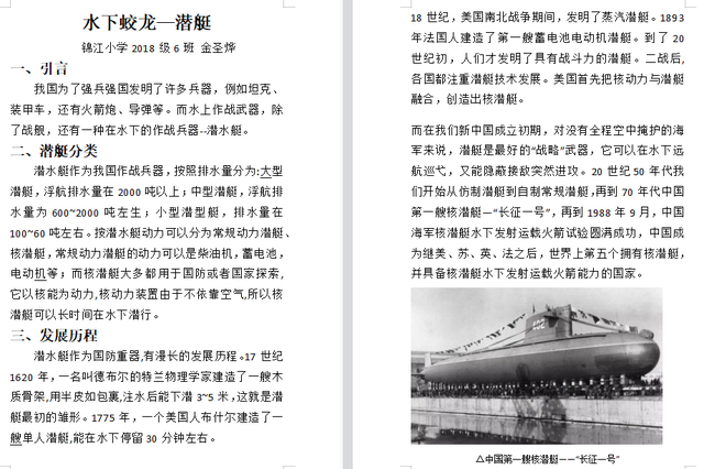 与国防军史相遇,追寻着强国梦。以国防科技为主题,锦小娃们积极查阅资料,遨游于国防军史之中,奋笔撰写小论文,既勤于思考,又勤于实践,知行合一。展示了他们对国防科技的热爱及憧憬。