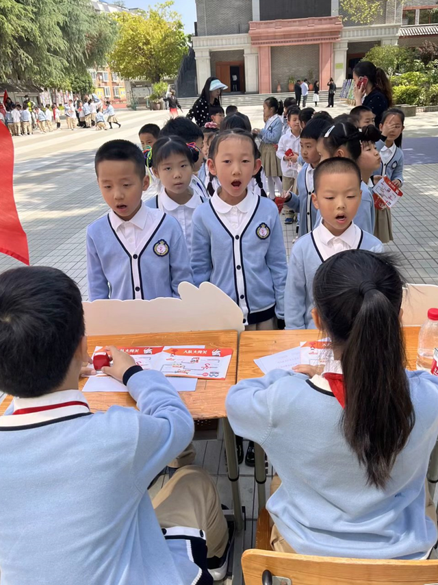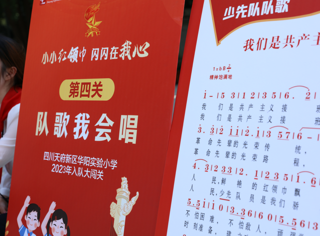 芳菲四月,人间春好。为全面落实《中共中央关于全面加强少先队工作的意见》《关于构建阶梯式成长体系,增强少先队员光荣感的指导意见》等有关文件精神,发展中国少年先锋队队员,教育学生继承和发扬中国少年先锋队的优良传统,培养学生积极进取、健康向上的精神,促进学校红领巾事业的蓬勃发展,4月27日上午,四川天府新区华阳实验小学举行“小小红领巾 闪闪在我心”一年级入队闯关活动。