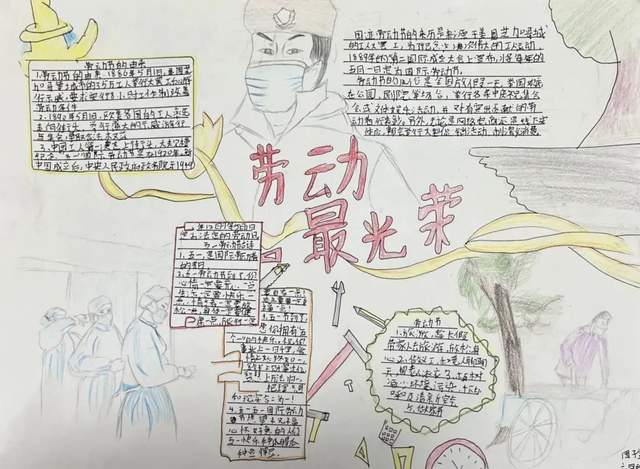 为了表达对劳动者们的感谢,各中队完成了一幅幅精美的手抄小报,内容丰富、形式多样,能够体现“劳动节”的内涵,既培养了同学们的动手实践能力,又陶冶了审美情操,并懂得了“劳动光荣,奉献最美”。