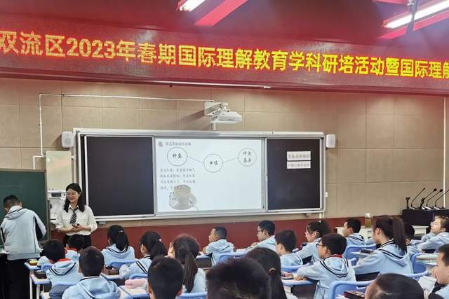 在本次活动中,四川大学西航港实验小学钟正宇老师作为双流区国际理解教育优秀课例一等奖获得者进行了现场课堂展示,与双流区实验小学的孩子们一起给大家呈现了《舌尖上的碰撞 一茶一会好滋味》。钟老师以现实生活的需要,用外国友人到老师家并将招待他们这样的情景引入课题的中心词“茶”。学生通过观看视频,学生讨论,现场制作并品茶,找出了英式茶、中式茶和日式茶的异同。后面回到实际生活,学生通过小组表演,在实际操作过程中进一步了解的不同国家的茶文化。最后,钟老师提出了本课大概念“以茶会友”,隐藏着待客礼仪,体现茶点的社交性和休闲性。