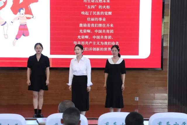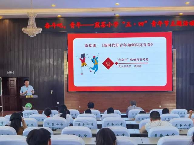 我们是五月的花海,用青春拥抱时代......伴随着共青团员们深情的朗诵,煎茶小学“五·四”青年节主题活动——奋斗吧,青年在鹿溪讲堂拉开帷幕,尽展煎茶小学青年教师队伍和少先队在党支部带领下焕发出的时代风采——以青春之名,落实使命担当。