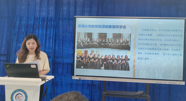 胡春蓉导师做出分享,研学会以课题为导向,以小学班级合唱教学方法研究为策略,以提炼小学音乐教学主张和音乐教育质量为目标,以名师为核心,以学员团队为主体,切实解决目前小学音乐教育中面临的热点难点问题,在实践中探索,形成研修成果,提升音乐教师专业技能与素养。研学会坚持躬耕课堂、以研促教;多维辐射、示范引领;实践研究、开发模式;专业学习、改进提升。