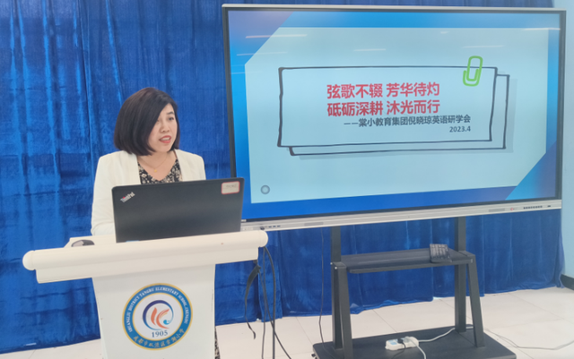 倪晓琼导师做出分享。为加强棠小教育集团青年教师之向同的互动交流,探索在2022义教新课标政策下.如何采用“三hui"教学(会排谈、慧阅读、绘思维)进行小学英语课堂教学,提高教学效率;同时通过解读2022新课标的大单元教学、指向主题意义的阅读教学等提高青年教师的教科研能力。研学会坚持理论积淀、提升素养;乐于求索、积极科研;课堂教学、追求本真;共沐书香、分享喜阅;且行且思、锐意进取。