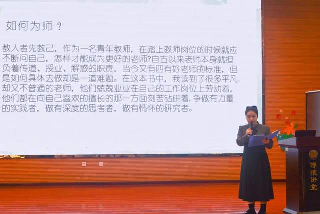 精彩的演讲比赛开始了,通过初赛的12名青年教师纷纷登场,分享他们在阅读过程中的心得感悟。