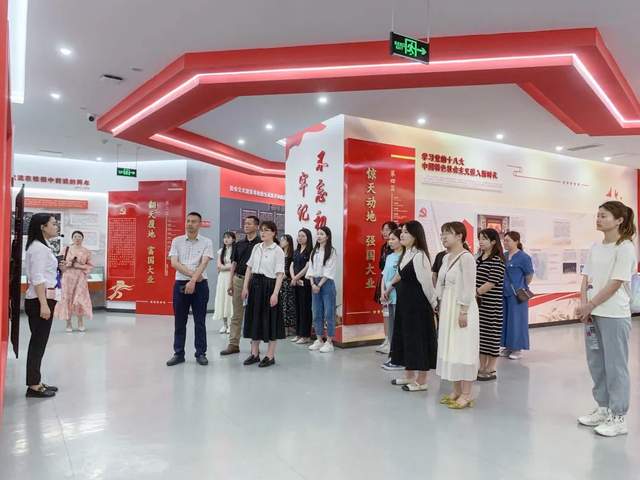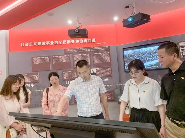 随后,金小教师将“阅读”从校内持续到了校外,党员代表和青年教师怀着敬畏之情来到双流史志馆,深入学习、回顾党的光辉历史,重温双流共产党人初心之路,聆听一个又一个感人至深的红色故事。从五四运动和党的创建开始,以图片形式对党的百年红色征程的每个历史阶段进行全景式展示。