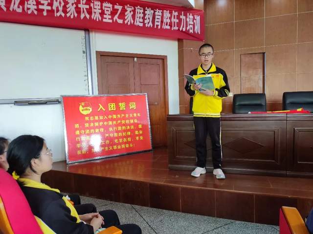 接着,进行入团宣誓,罗祎恒同学带领全体团员庄严宣誓:我志愿加入中国共产主义青年团,坚决拥护中国共产党的领导,遵守团的章程,执行团的决议,履行团员义务,严守团的纪律,勤奋学习,积极工作,吃苦在前,享受在后,为共产主义事业而奋斗!新团员向团组织表明了自己的决心,牢记了团的誓言,激发了做一名共青团员的光荣感和责任感,增强了为共产主义奋斗的信念。