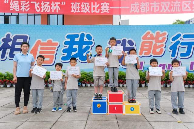 为了进一步落实和推进国家“双减”政策,丰富校园文化生活,增强学生体质,突出“我运动 我健康 我快乐”的理念,推动校园体育文化建设、学校素质教育的全面实施。2023年5月6日上午,双流区实验小学外国语学校举行了2022级第一届“绳彩飞扬”班级跳绳比赛。