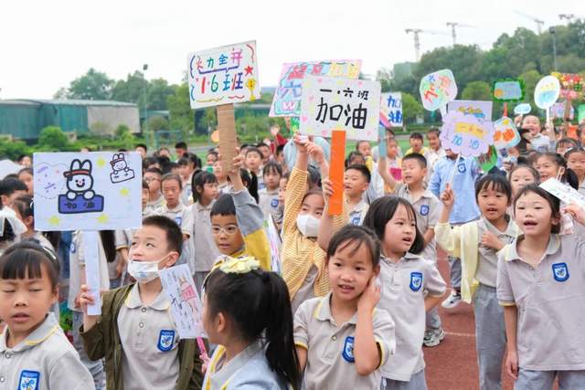 为了办好本次比赛,全体师生做了大量的赛前准备工作。体育老师对学生进行了专业的指导,班主任对比赛队员们进行了精心的选拔,全体同学更是热情高涨,利用课间休息、放学回家等课余时间,积极投入到练习之中,校园里到处是生龙活虎的场面。今天终于能在赛场上一展身手,孩子们都已经跃跃欲试。随着周晓玲校长正式宣布比赛开幕,并预祝本次比赛取得圆满成功的同时,比赛现场顿时呈现出一片欢腾热闹的景象,争相挥舞着手中的加油牌。